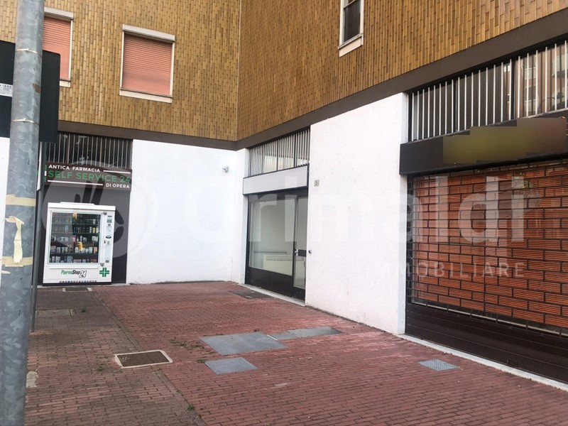 Opera (Mi). Ubicato nel centro del paese in zona di notevole passaggio proponiamo in locazione luminoso negozio con una luce e un ingresso, interamente ristrutturato con serranda elettrica e dotato di impianto di climatizzazione. Ingresso in zona open-space con servizio finestrato e soppalco/ripostiglio. Solo a referenziati e per lo svolgimento di attività con orari diurni. Disponibile subito.