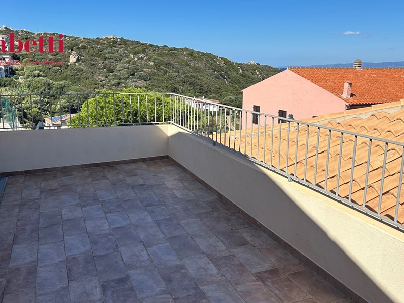 La zone nuit, bien séparée, comprend une grande chambre principale ainsi qu'une seconde chambre double donnant accès à une terrasse panoramique - un espace parfait à aménager en coin détente ou solarium.?La salle de bains, récemment rénovée, est décorée avec goût, avec des finitions en Cerasarda, emblématiques de l'artisanat sarde.