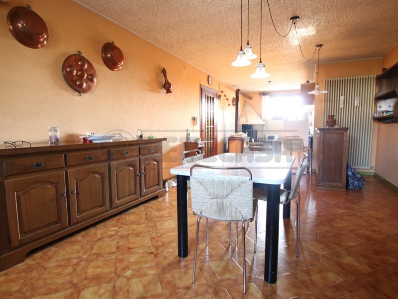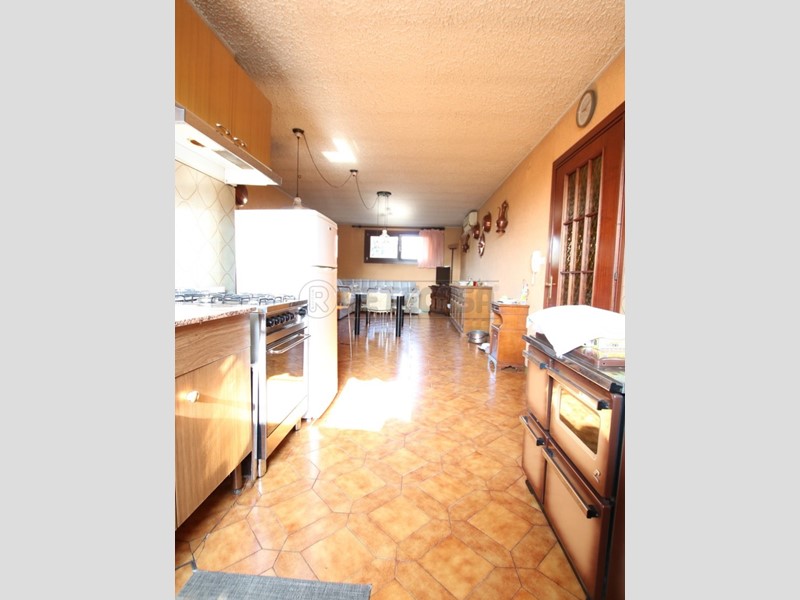 Al primo piano si sviluppa l’abitazione principale: un luminoso soggiorno con affaccio sul terrazzo, cucina con sala da pranzo, corridoio, due camere matrimoniali, una camera singola e un bagno finestrato con vasca.