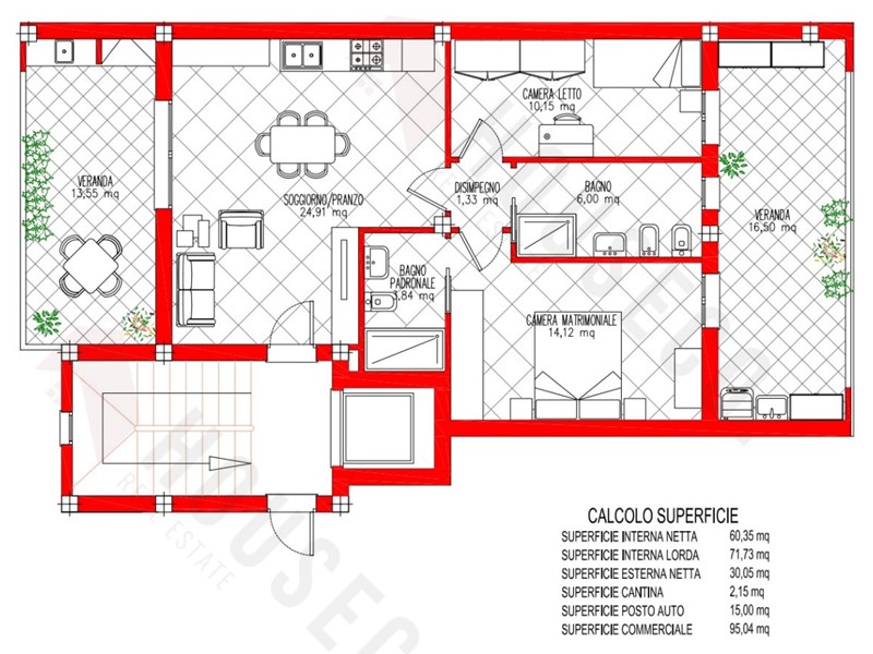 -Una seconda veranda di circa 17 mq, uno spazio esterno ideale per godere del clima mediterraneo e realizzare il tuo angolo barbecue grazie alla predisposizione per la canna fumaria.