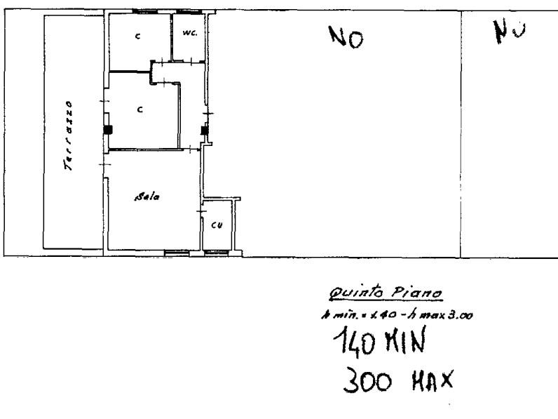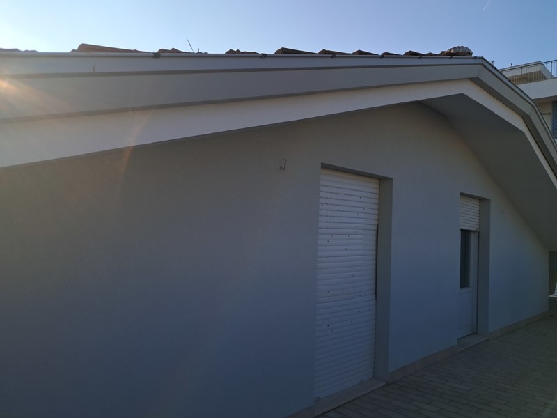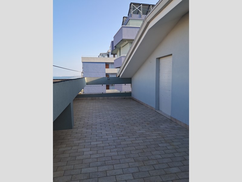 L'appartamento mansardato è composto da ingresso, Cucinotto, Soggiorno, 2 camere da letto e 1 bagno. Completa la soluzione un ampio terrazzo, di circa 50 mq., con vista mare. L'appartamento si trova a 50 mt. dalla spiaggia. Necessita di interventi di ristrutturazione, gli impianti e le rifiniture sono degli anni di costruzione. E' quindi necessario un rifacimento di tutti gli impianti, infissi esterni ed interni, pavimentazione, rivestimenti e tinteggiatura. Attualmente è utilizzato come locale da sgombero.