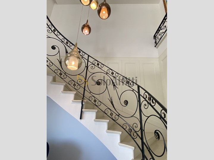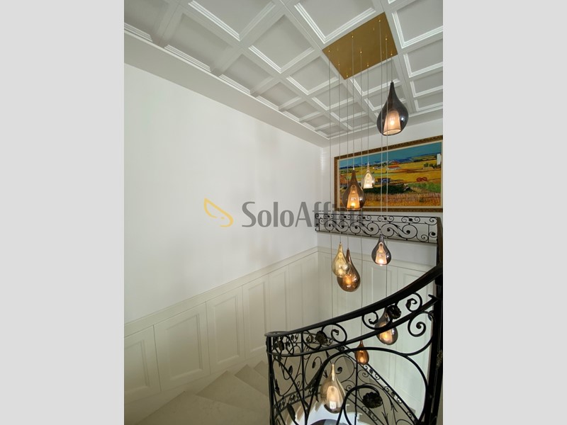 Dal salottino, una scenografica scala, illuminata da un lampadario a gocce di vetro alto più di 3 metri, conduce al terzo ed ultimo piano dove si trova la vera anima della casa.