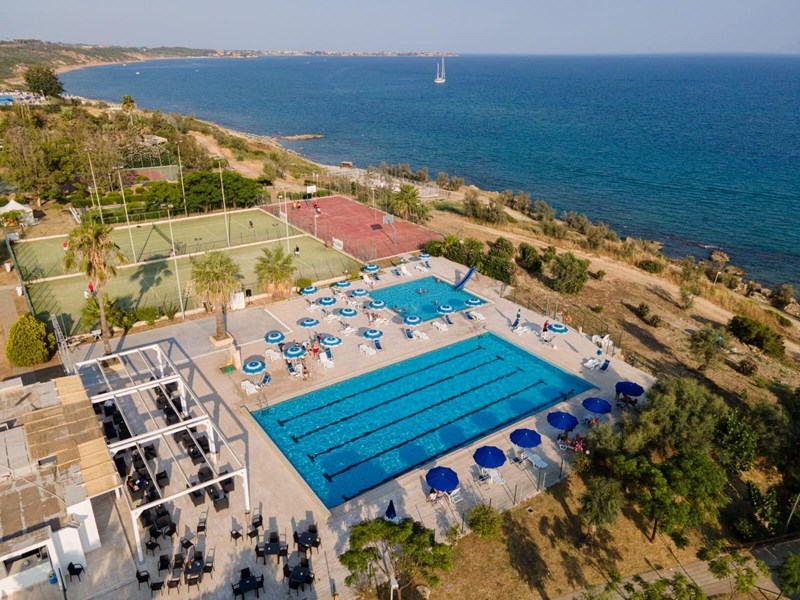 - Servizi di ristorazione come Lounge Bar e Pizzeria con ampia vista sul Mare, Self-Service, Bar sulla spiaggia e Bar in piscina, Supermarket;