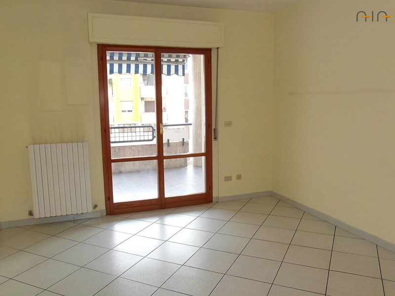 Appartamento di mq 73 circa posto al piano primo servito da ascensore composto da ingresso, soggiorno, cucina, disimpegno, due camere da letto, bagno finestrato con doccia e comoda terrazza di mq 15 circa. Completa la proprietà un locale garage di mq 19 circa posto al piano seminterrato della medesima palazzina. L'appartamento è attualmente locato a canone concordato a persone referenziate canone di locazione pari a Euro 450,00 mensili con scadenza contratto al 31/08/2027. L'appartamento si presenta in buone condizioni generali, con portone d'ingresso blindato, pavimentazione in grès uniforme in tutti gli ambienti, infissi in legno tipo douglas con doppio vetro e impiantistica funzionante e a norma.