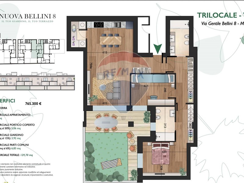 TRILOCALE - TC piano terra con giardino, Via Gentile Bellini 8, Milano - MM4 FRATTINI