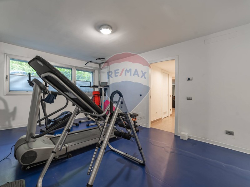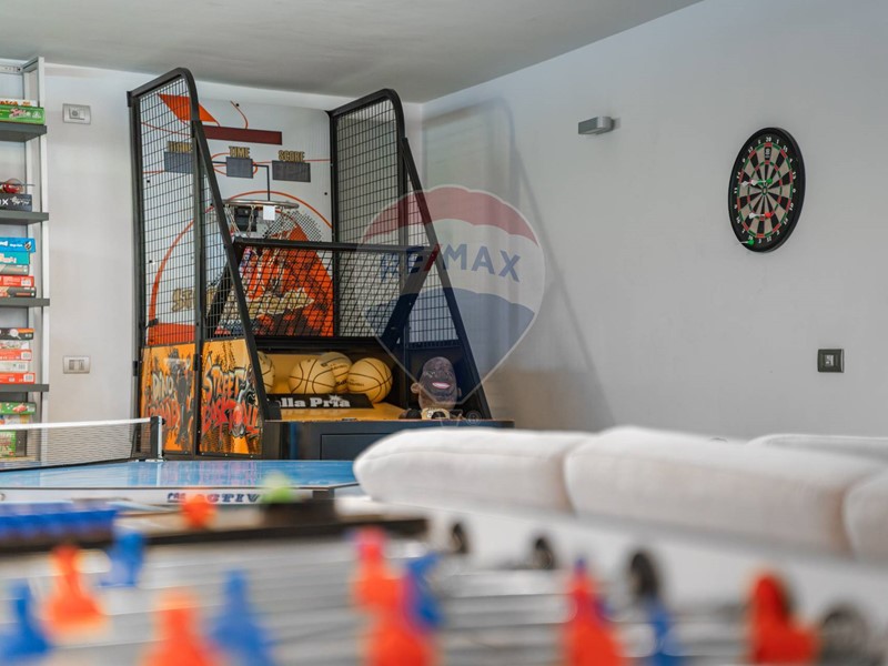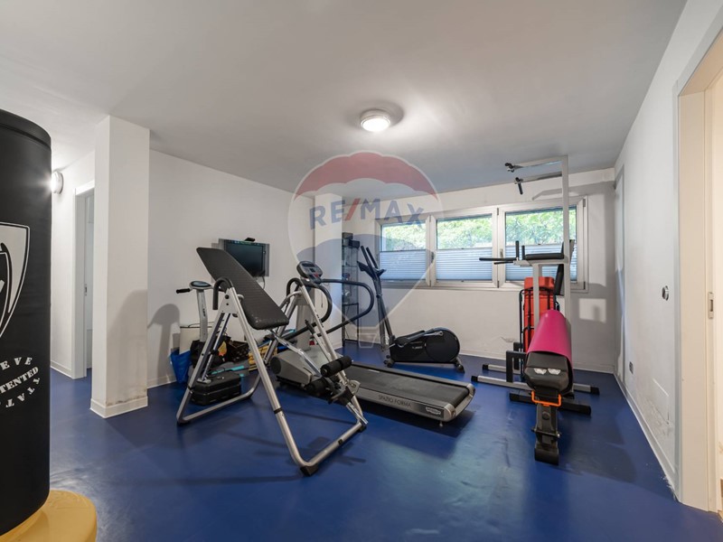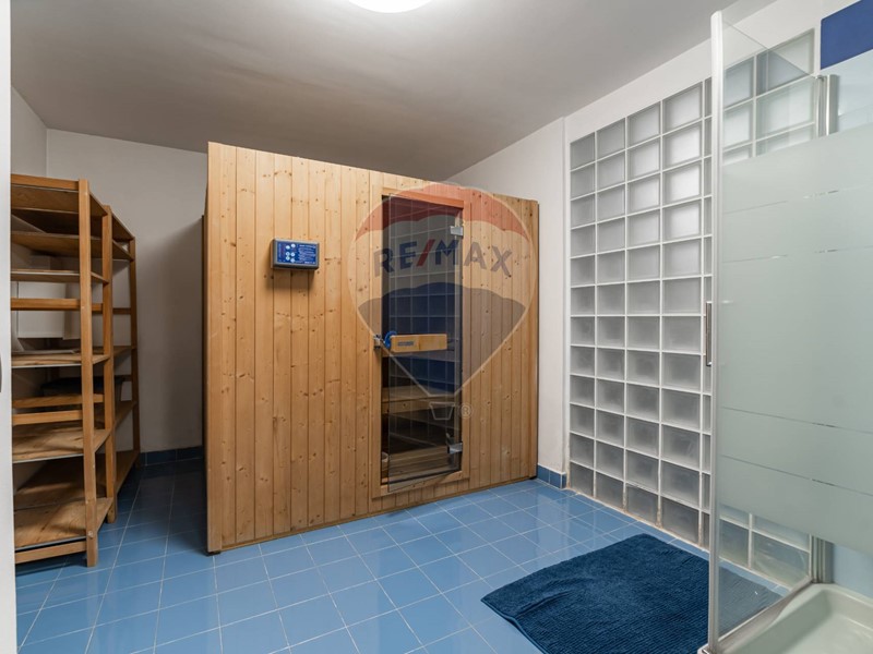 Troviamo una spaziosa sala giochi, una comoda camera di servizio, un bagno, lavanderia, sauna e palestra, offrendo un'area dedicata al relax e al benessere.