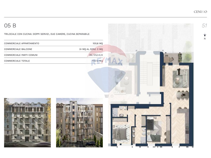 Trilocale in Vendita a Milano, 890'000€, 107 m²