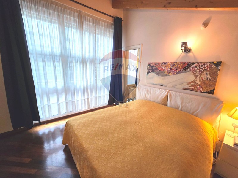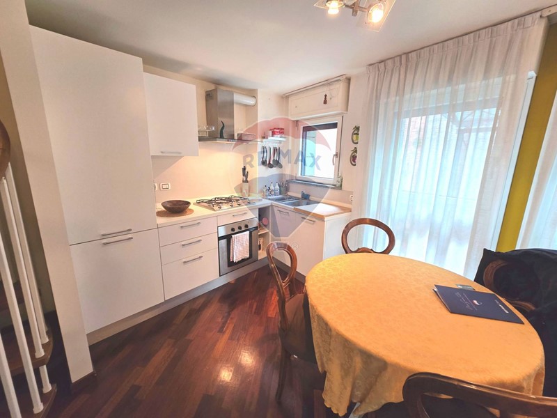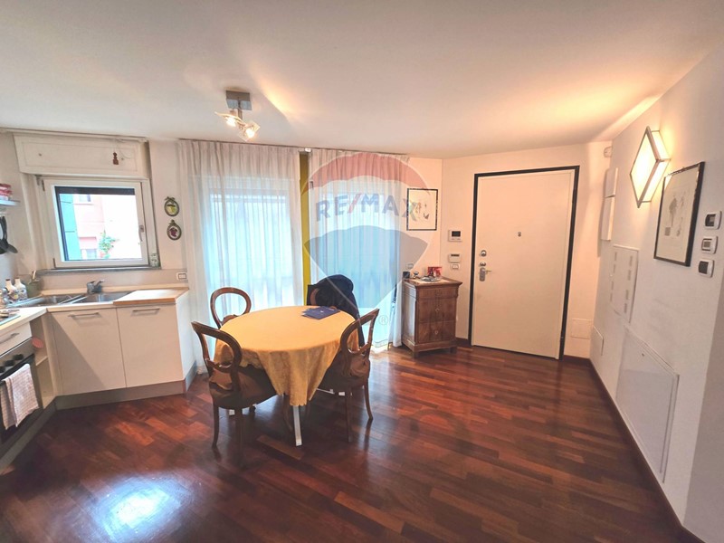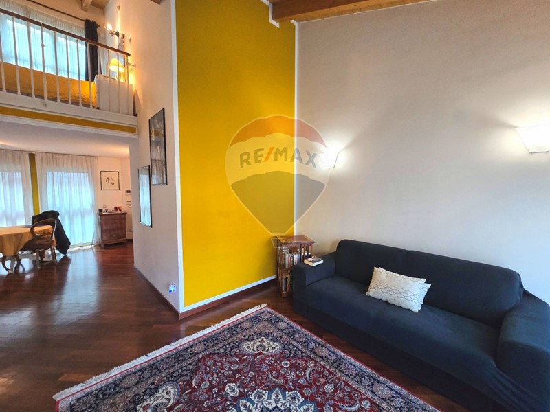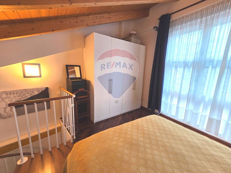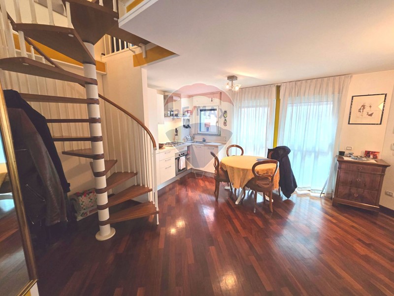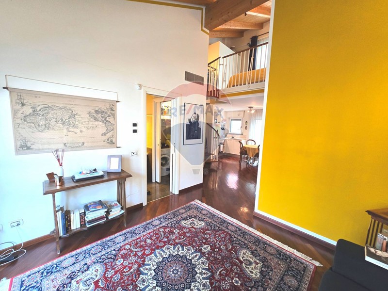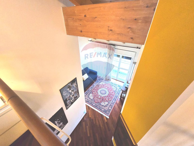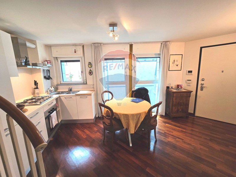 Lappartamento è un elegante bilocale open space disposto su due livelli, con doppia esposizione, balcone e due bagni.