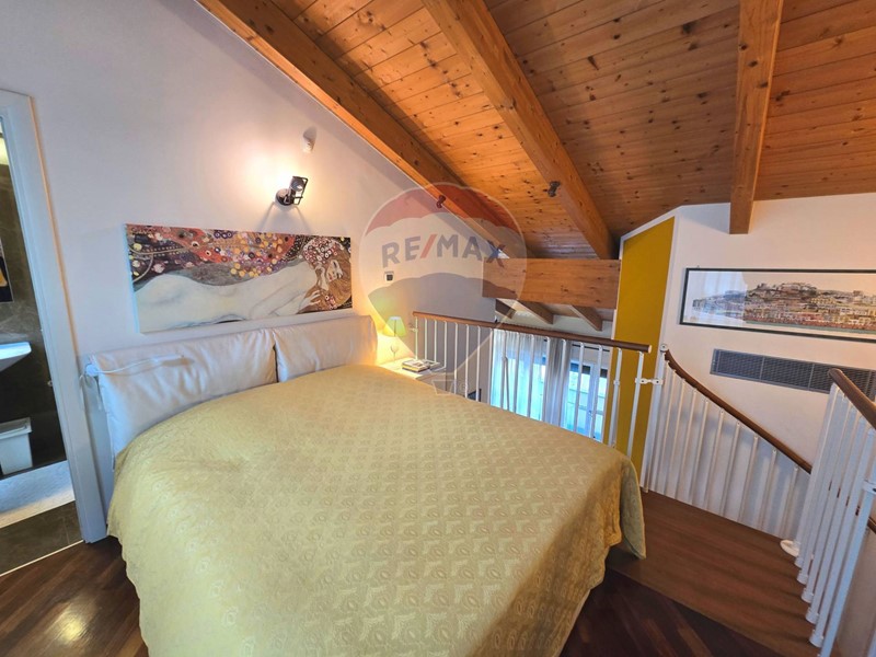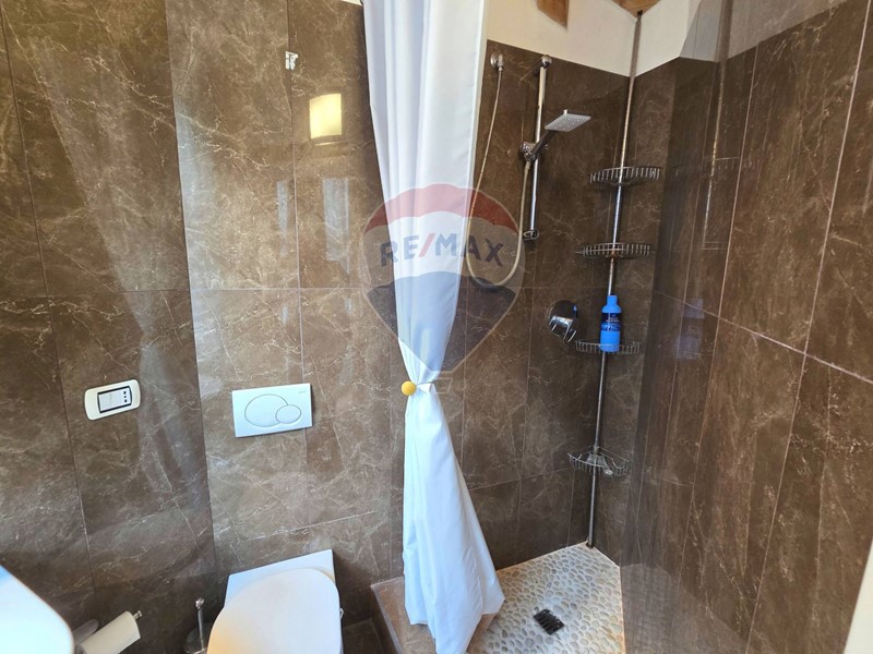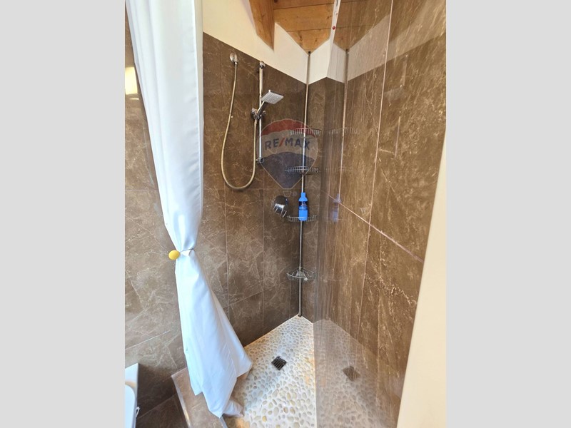 Al piano superiore, collegato da una scala in noce, troviamo la camera da letto padronale e un bellissimo bagno en suite, anchesso con finestra e con un box doccia in pietra.