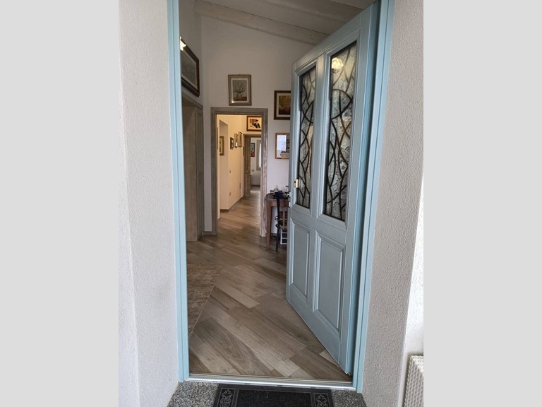 Gli infissi di ultima generazione (legno interno, alluminio esterno, vetrocamera da 3,5 cm) assicurano eccellente isolamento termico e acustico.