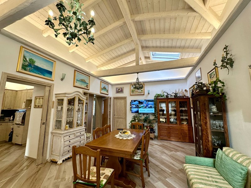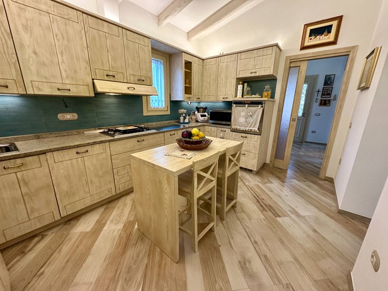 La cucina moderna e completamente attrezzata, con funzionale vano dispensa, si apre sul living, creando un ambiente conviviale e perfetto per la vita quotidiana o per ospitare amici e famiglia.