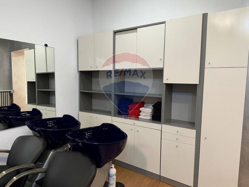 L'ingresso si apre sulla prima sala luminosa e spaziosa, con tre postazioni di lavoro complete di specchi, un angolo attesa ben organizzato e una vetrina su strada che garantisce visibilità e luce naturale. La zona cassa è impreziosita da quattro espositori retroilluminati e ampi cassettoni, perfetti per la presentazione e la vendita dei prodotti. Il pavimento in laminato effetto legno, conferisce calore e stile allambiente. Un pratico sgabuzzino, con predisposizione per due monitor TV, completa la zona. Il condizionatore garantisce un clima sempre piacevole anche nella zona lavaggio, mentre la presenza di accessori professionali carrelli, poggiapiedi, casco a parete rende il lavoro comodo ed efficiente.