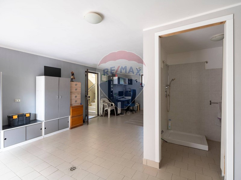 Nel piano seminterrato è posizionato l'ampio garage, molto ben rifinito, utilizzabile anche come taverna o studio, dotato di bagno con doccia.