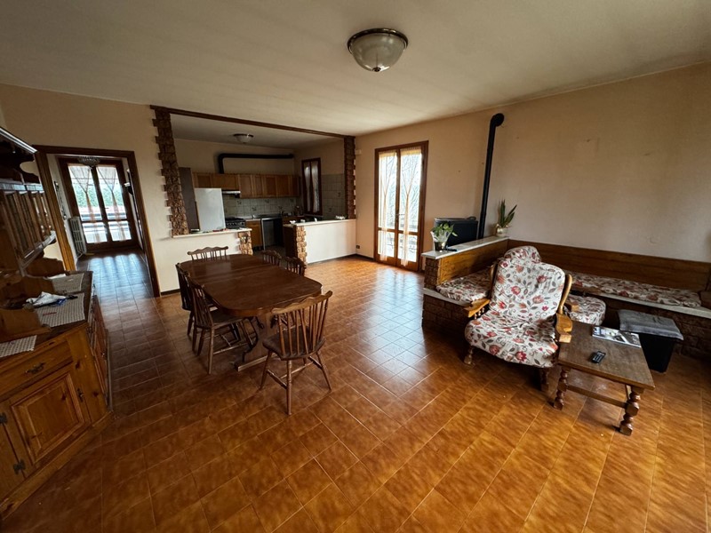 Seconda Unità: Posta al Primo Piano da Ingresso in Soggiorno con Camino e Stufa a Pellet, Cucina Abitabile, disimpegno con Terrazzo di 50 mq., 3 Camere da letto e Bagno Nuovo.