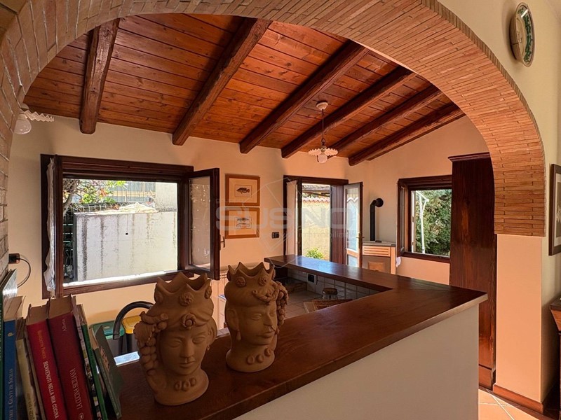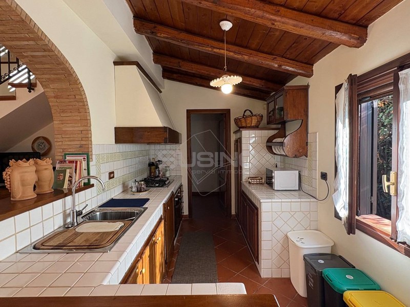 Internamente l'immobile si presenta con ingresso sul soggiorno su cui affaccia la luminosa e ben rifinita cucina in muratura attrezzata con tutti gli elettrodomestici, completano la superficie al piano terra il bagno e la lavanderia; da una comoda scala si accede al piano superiore che ospita la camera da letto.