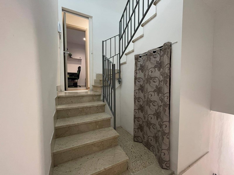 Tramite scala in marmo si accede al primo piano, composto da disimpegno, camera da letto matrimoniale con balcone, due camerette e bagno con doccia.