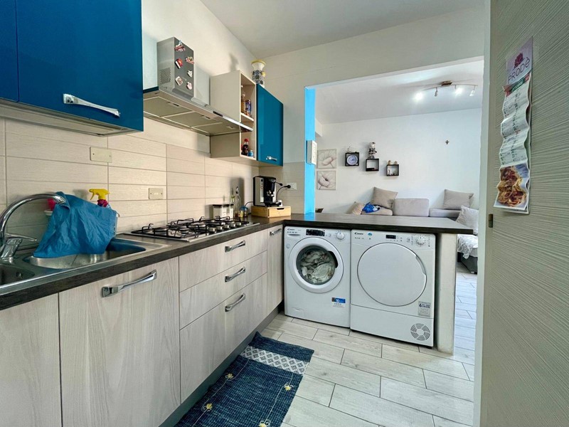 Attraverso una comoda scala interna si raggiunge il secondo piano, dove si apre unampia zona living con angolo cottura, caratterizzata da spazi ariosi e funzionali, con accesso diretto al balcone, oltre a un secondo bagno con doccia.