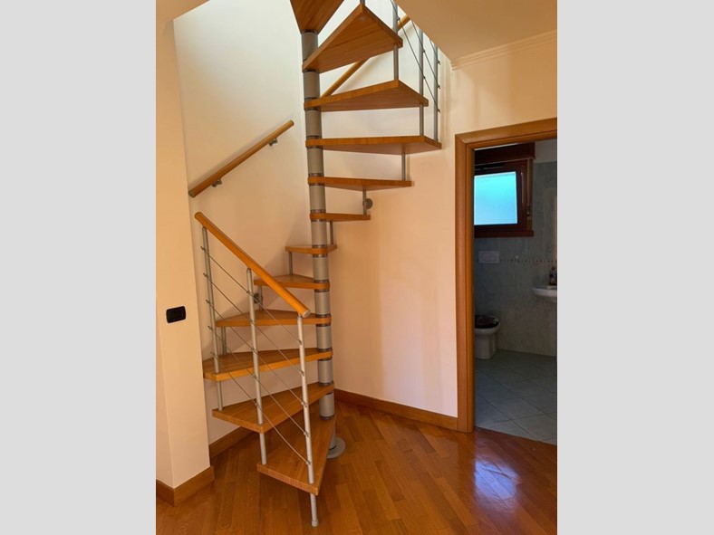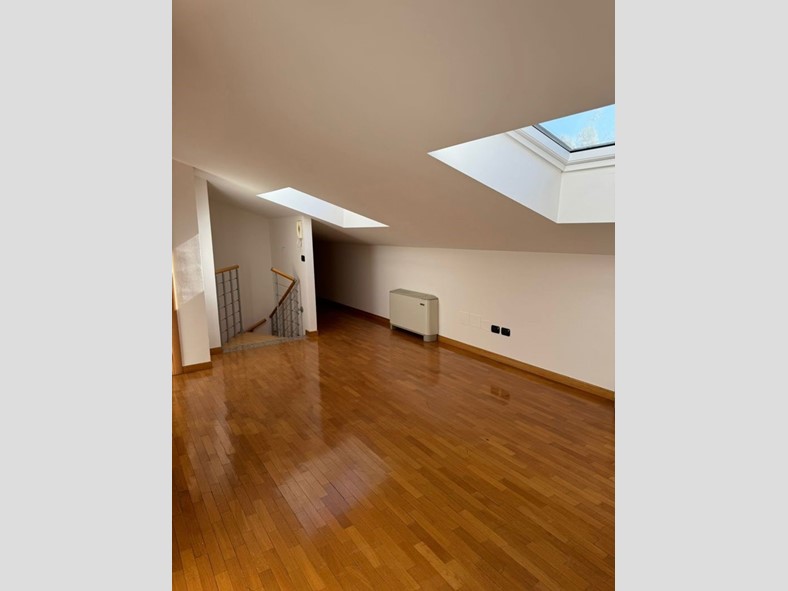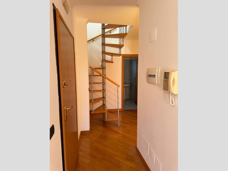 L'immobile occupa il 2° e 3° piano, ultimo, delle piccole palazzine in cortina con ascensore, ed è composto da ingresso, soggiorno con angolo cottura e con doppio accesso al terrazzo, due camere da letto matrimoniali con affaccio diretto sul balcone angolare, ampio bagno finestrato con vasca idromassaggio; la scala interna, completamente realizzata in legno, conduce al piano superiore che ospita la comoda mansarda, dotata di due lucernari, un ulteriore spazio con molteplici funzionalità (tipo cabina armadio), il bagno al piano con doccia.
