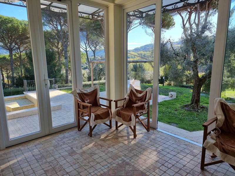 CAMAIORE - In posizione panoramica, villa molto bella immersa nel verde e in una atmosfera del tutto suggestiva, composta al piano terra da terrazza verandata di ingresso, soggiorno con camino, disimpegno, cucina, 2 camere grandi, bagno e vano caldaia: taverna con salone con camino, cucina tinello, camera con camino,, stanza armadi, ripostiglio, bagno, lavanderia e garage con accesso anche dall'esterno; al piano primo da camera matrimoniale con balcone, 2 camere matrimoniali con terrazza di cui una con bagno privato, altro bagno. Parco con piscina e doccia esterna, piazzale con posti auto. MERAVIGLIOSA. Possibilità anche di affitto o stagionale. Informazioni in agenzia. Finiture di lusso e comfort di ogni tipo. Certificazione energetica in fase di valutazione.