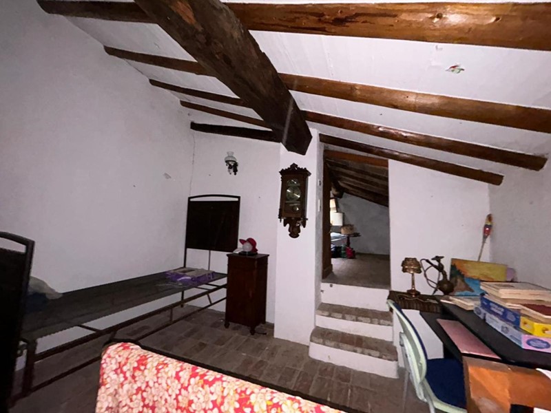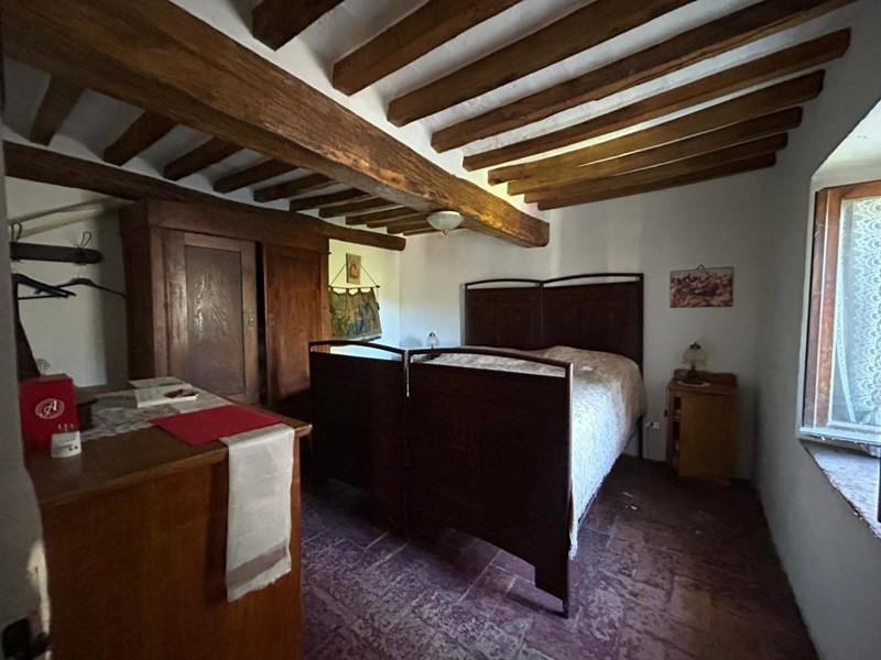 La camera matrimoniale, con pavimento in cotto e soffitto con travetti in legno, regala un fascino rustico senza rinunciare al comfort moderno.