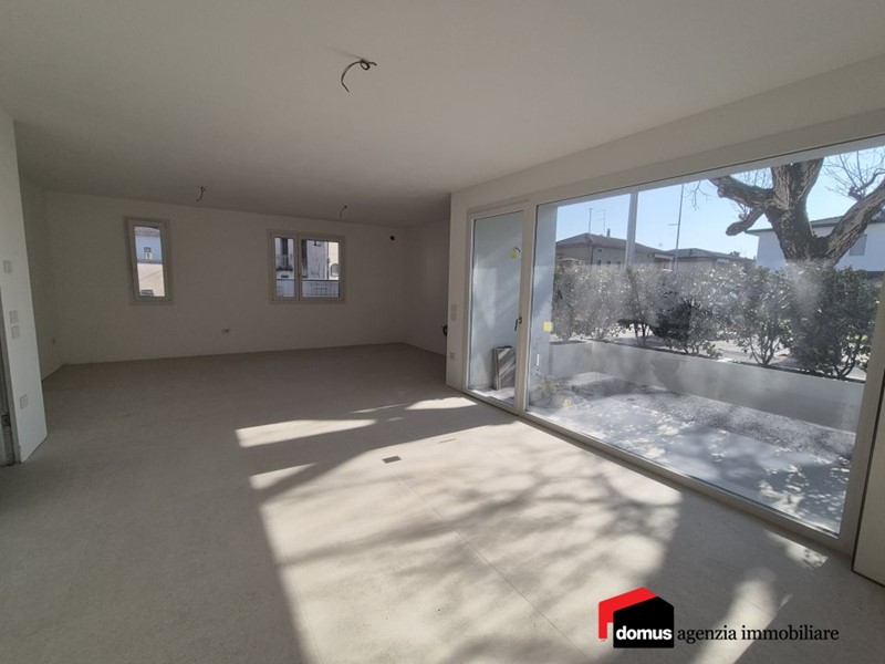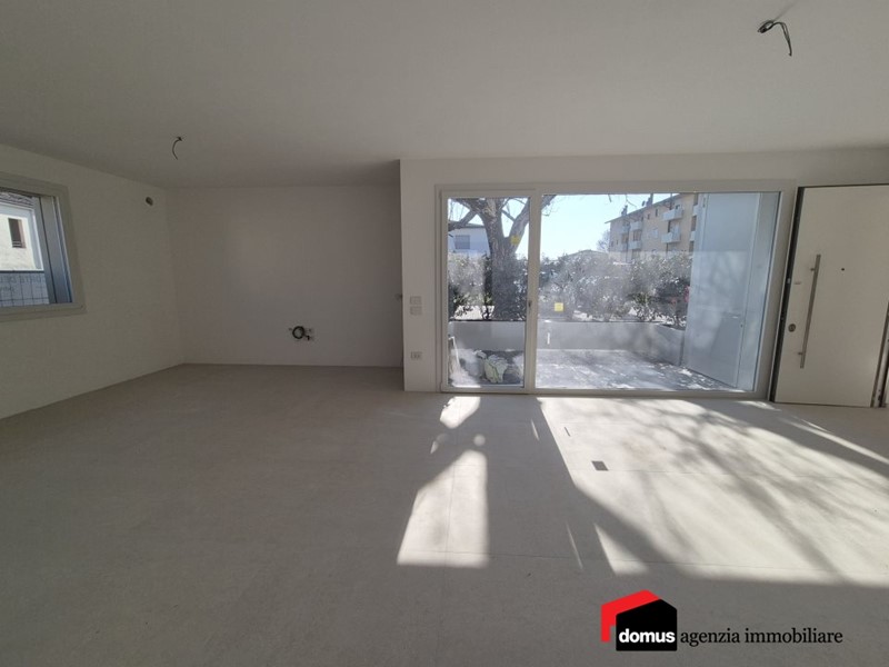Villaverla: in posizione a ridosso del centro storico comodamente raggiungibile a piedi, nuovissimo appartamento BIICAMERE al piano terra inserito in un contesto di poche unità abitative e caratterizzato dalla presenza di un'ampia vetrata e finiture contemporanee.\nL'immobile si articola come segue: luminosa zona giorno con area cucina-pranzo e zona dedicata al salotto-Tv dotata di uscita diretta sull'area esterna vivibile e abitabile in ogni momento dell'anno; la zona notte ospita due camere da letto, 2 bagni completi entrambi finestrati e un piccolo angolo lavanderia. Data l'ampiezza della zona giorno e la presenza di una finestra supplementare, è possibile ricavare una terza camera singola oppure uno studio a seconda delle esigenze.\nL'appartamento è dotato di tutti i comfort necessari: tapparelle motorizzate, videocitofono, predisposizione impianto VMC, serramenti doppia camera/triplo vetro, pompa di calore per riscaldamento a pavimento e raffrescamento ad aria, pannelli fotovoltaici, caratteristiche che posizionano l'immobile in classe energetica A4 e che assicurano un risparmio energetico notevole. \nCompleta la proprietà un ampio garage doppio e un comodo posto auto esterno per parcheggiare l'auto proprio sotto casa.\nPiccolo contesto, metratura generosa, luminosità degli ambienti, design elegante, finiture di pregio, spazi moderni ed ecosostenibili sono le peculiarità di questo appartamento, confortevole e dal gusto contemporaneo.\nAcquisto soggetto ad imposta di registro e non ad Iva.\n\n\nQuattro buoni motivi per acquistare questo immobile:\n1. Spazi generosi e ben distribuiti;\n2. Luminosità degli ambienti;\n3. Finiture di pregio;\n4. Piccolo contesto - Maggiori Dettagli: Climatizzato, Insonorizzazione, Porta blindata, Predisposizione allarme
