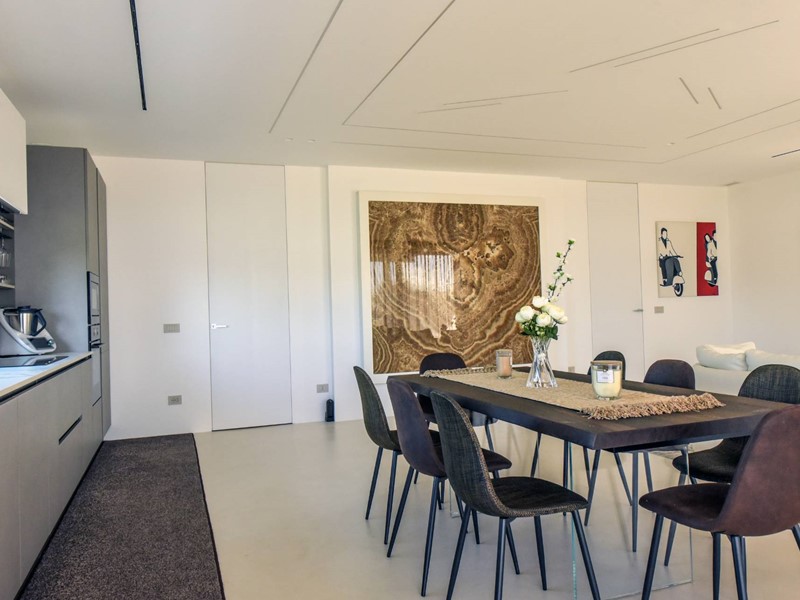 Ogni dettaglio è stato studiato per offrire una sensazione di equilibrio e raffinatezza: pavimenti continui in resina, complementi darredo su misura e un uso di luci LED dinamiche che creano scenari personalizzati in ogni ambiente.