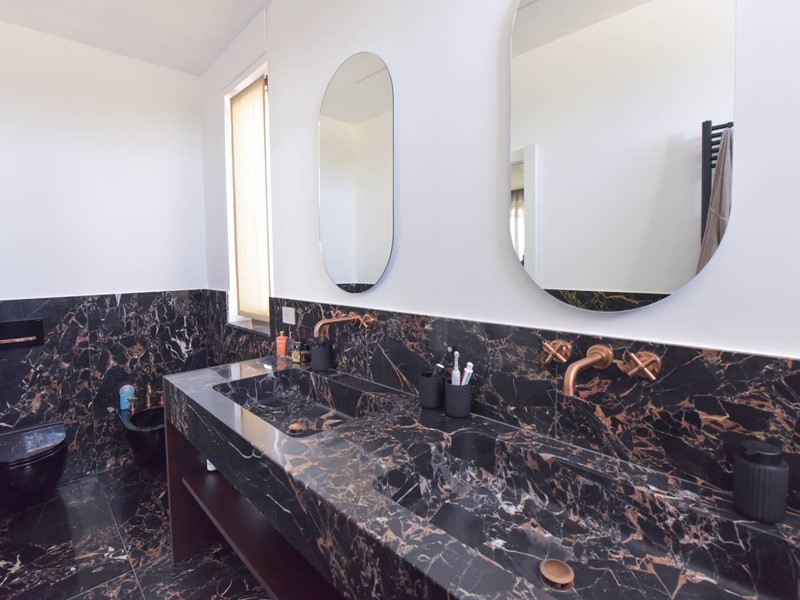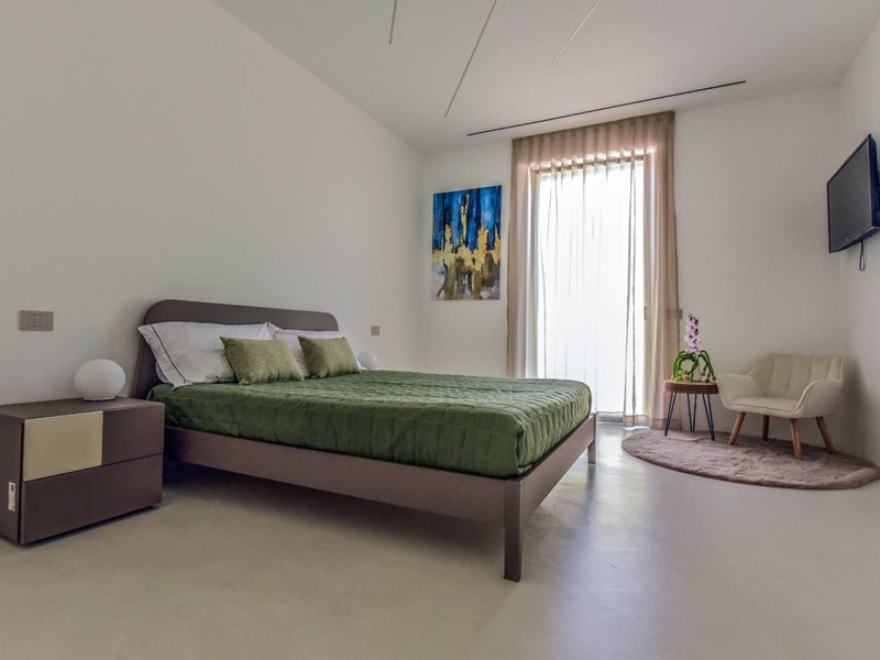 La master suite, ampia e sofisticata, regala unesperienza da boutique hotel: bagno di pregio con finiture ricercate, armadio con TV integrata e accesso diretto alla zona esterna.