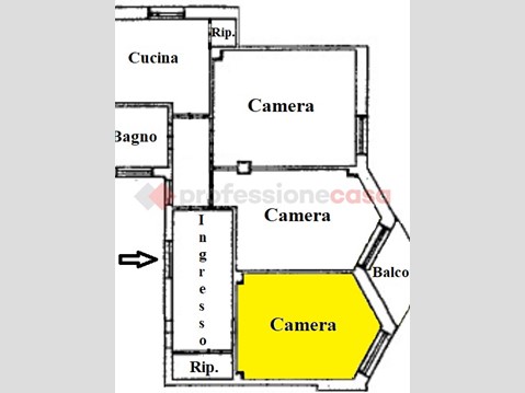 L'appartamento è composto da 3 ampie camere ad uso singolo, due delle quali già occupate, ed aree comuni, quali cucina arredata, bagno, ingresso, disimpegno e due ripostigli.