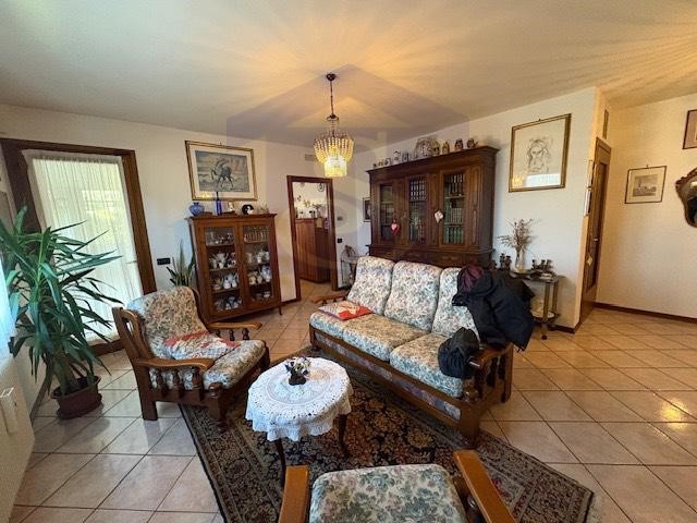 Sacile, località San Giovanni del Tempio, luminoso appartamento al piano rialzato del 1999, in piccola palazzina con giardino esclusivo. Composto da sala, cucina separata, tre camere, due bagni, ampio porticato coperto, doppio garage cantina e taverna con caminetto..
