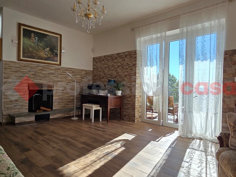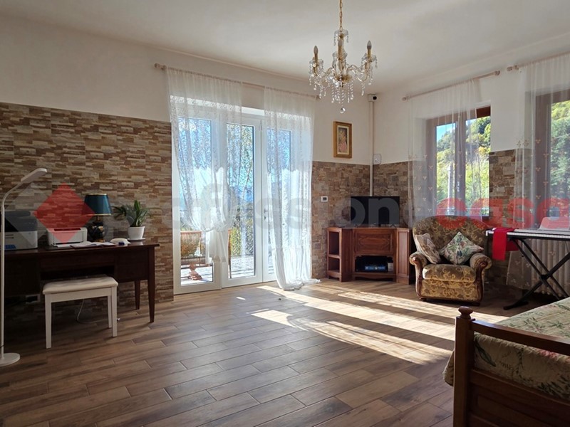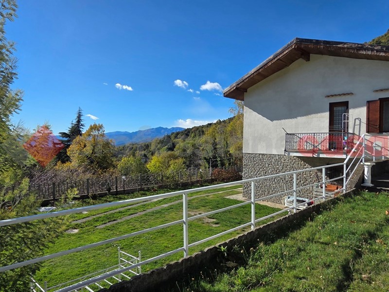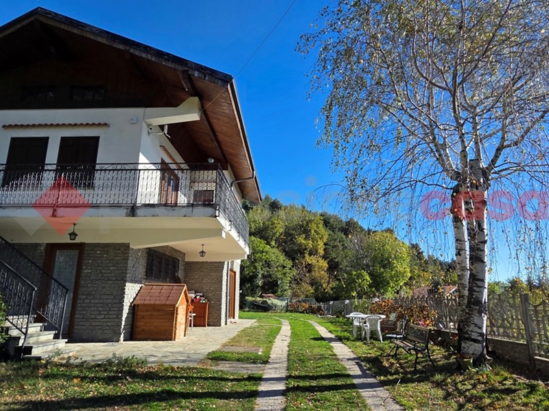 A circa  2 km dal centro Paese, inserita sulla collina con ottima esposizione e stupenda vista panoramica,  proponiamo villa  indipendente su 4 lati con circa 3000 mq di giardino. L'immobile è sviluppato su due livelli per un totale di circa 200 mq così composti : al piano rialzato ingresso da grazioso terrazzo vivibile, soggiorno living con angolo cottura e camino a legna, disimpegno,  2 camere da letto e bagno. Al piano terra troviamo la graziosa tavernetta con ampie vetrate con sfogo diretto sul giardino, bagno/lavanderia e locale tecnico. La soluzione è stata  ristrutturata di recente. Pannelli fotovoltaici e fognatura comunale.