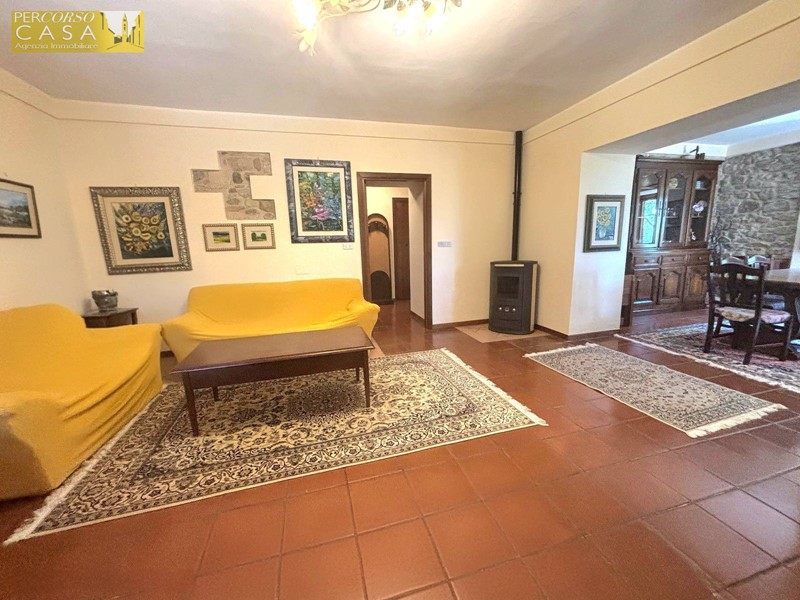 PIANO TERRA: dal caratteristico portico si accede all' ampio e luminoso salone collegato ad una cucina abitabile totalmente arredata.