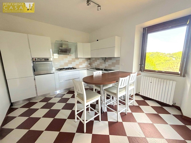 PIANO PRIMO: con accesso esterno tramite una comoda scalinata che conduce ad un terrazzo parzialmente coperto, si accede ad un ampio soggiorno con sala pranzo, una cucina.