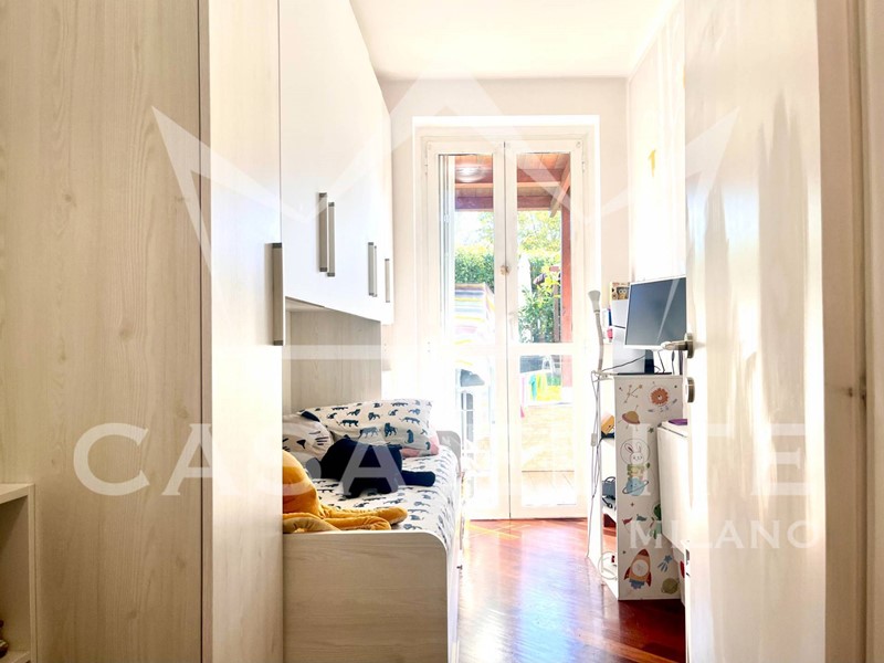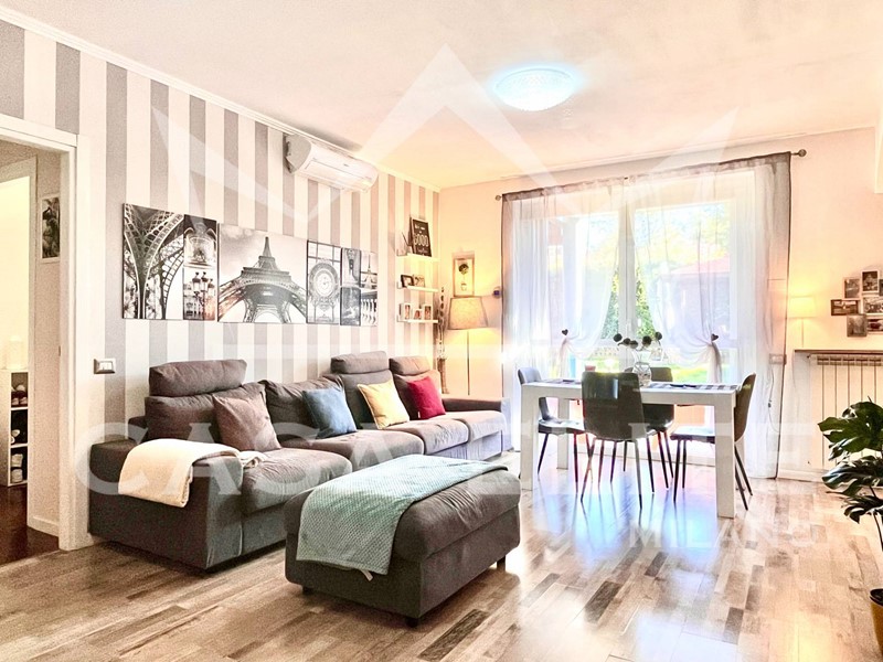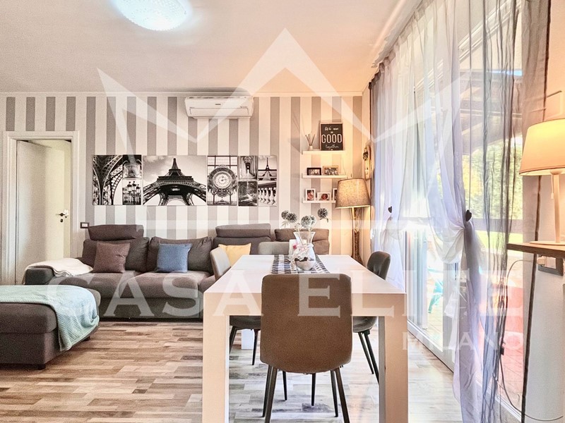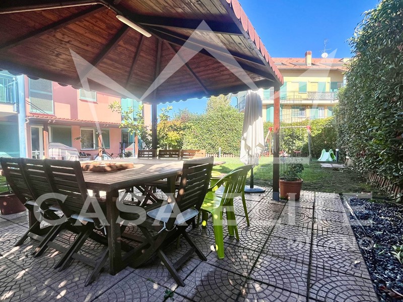 Entrando nell'appartamento ci accoglie la zona giorno con una luminosa area living ed una graziosa cucina a vista, entrambi con affaccio sullo splendido giardino privato, il cuore di questa proprietà. Il giardino di mq.260, perfettamente curato, è stato interamente rifatto nel 2023 ed ora è dotato di irrigazione automatica e illuminazione crepuscolare, vanta inoltre la presenza di unarea pavimentata per momenti di relax, un' accogliente gazebo ideale per cene allaperto e spazio dedicato ai più piccoli con altalene.