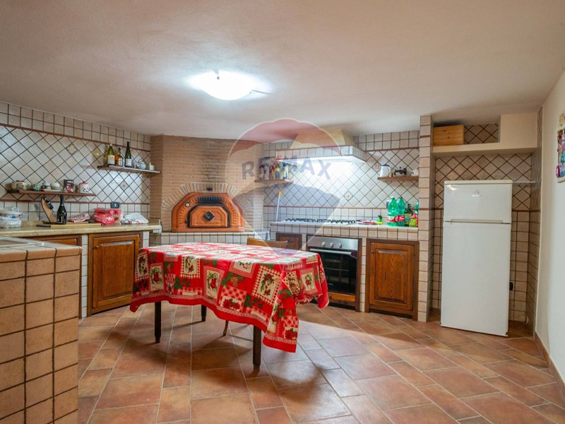 Piano S1: Sala hobby con salone doppio dotato di camino, cucina in muratura con forno a legna, magazzino e bagno.