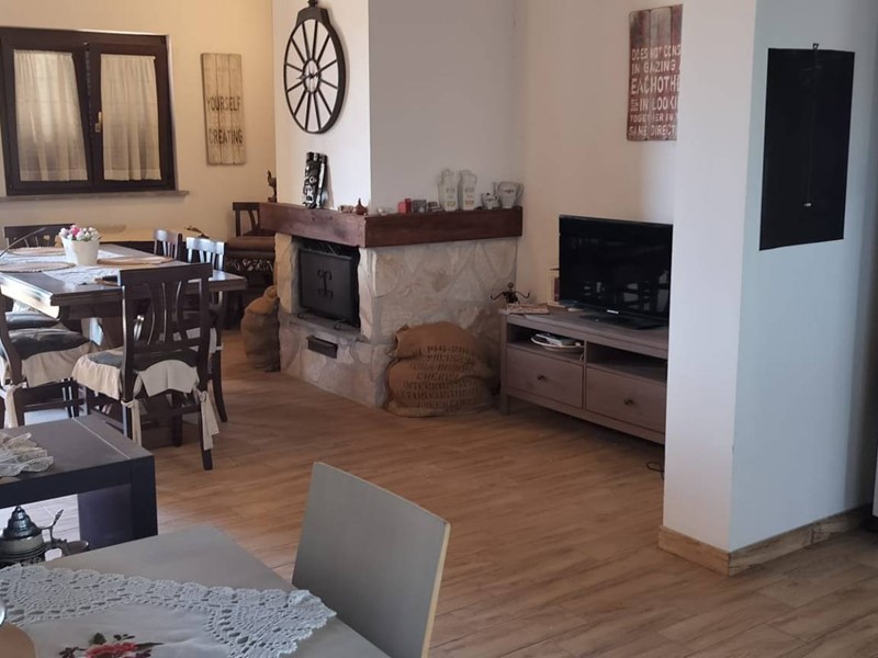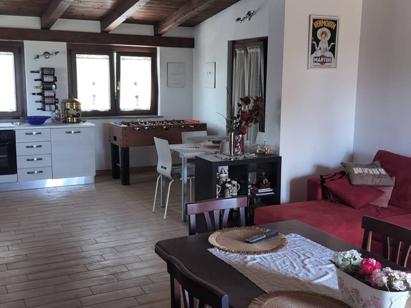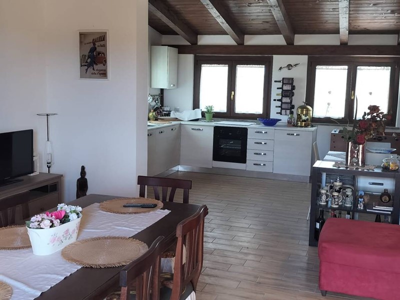 L'appartamento è così composto: un ampio e luminoso salone con camino, cucina a vista, due camere da letto spaziose e luminose, bagno finestrato, balcone vivibile e un meraviglioso terrazzo di circa 70 mq con affaccio panoramico sul verde. Completa la proprietà un ampio giardino.