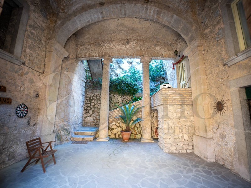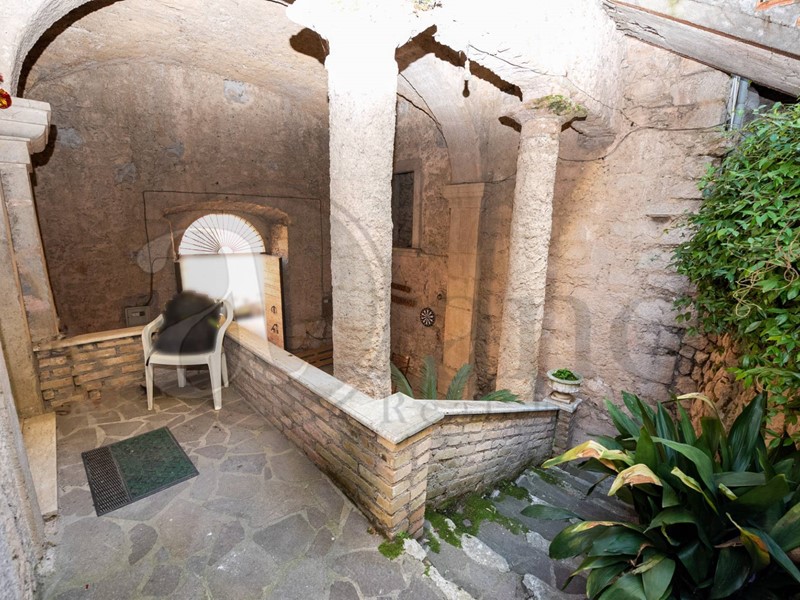 Entrando dall'ingresso principale ci troviamo subito di fronte un ampio cortile con due colonne romane ed un arco in pietra d'epoca.