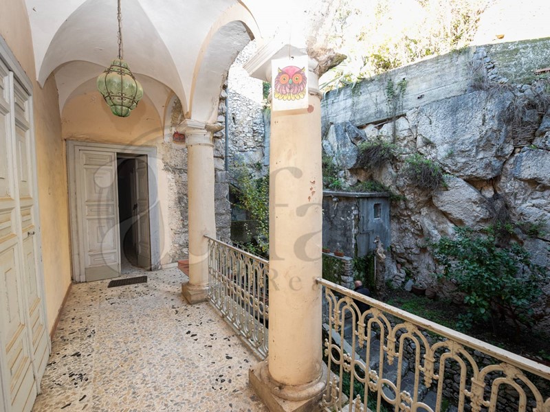 Il primo piano è suddiviso in due unità indipendenti ma collegate tra loro attraverso un balconcino con colonne antiche.