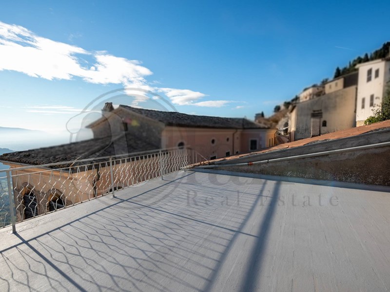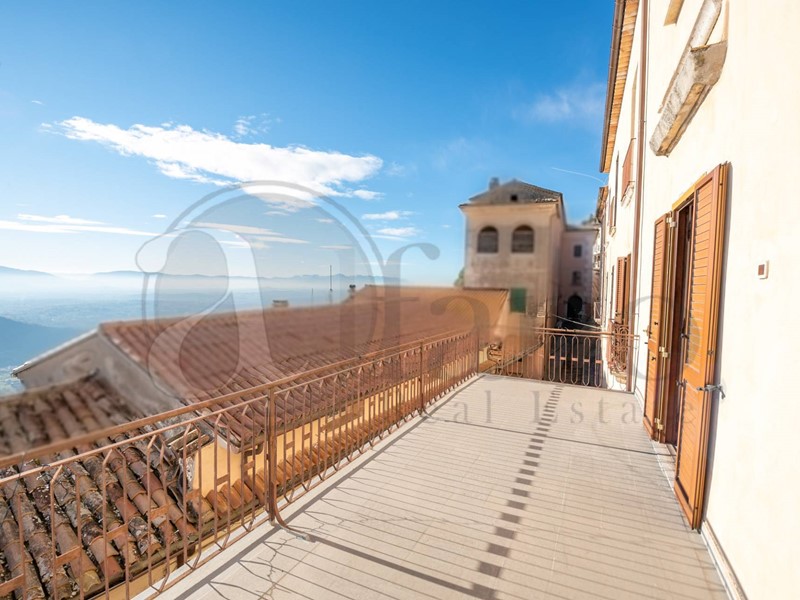 Uno dei due appartamenti è stato ristrutturato recentemente: gli spazi living accedono ad un ampio terrazzo panoramico dalla vista mozzafiato sul territorio circostante e su una zona del centro storico.