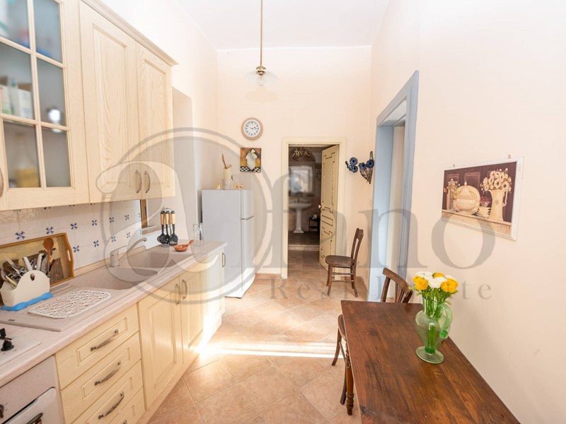Il secondo appartamento mantiene ancora le caratteristiche originarie di fine 800: la cucina presenta un imponente camino in pietra e un forno a legna, una volta utilizzato per la produzione di pane.