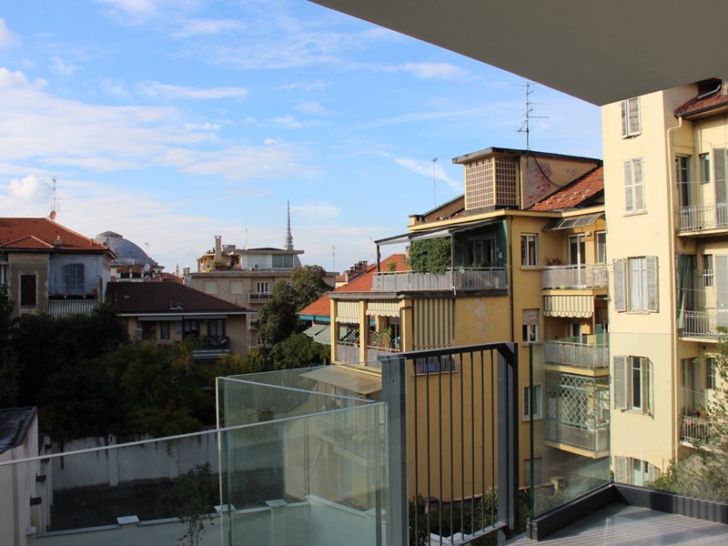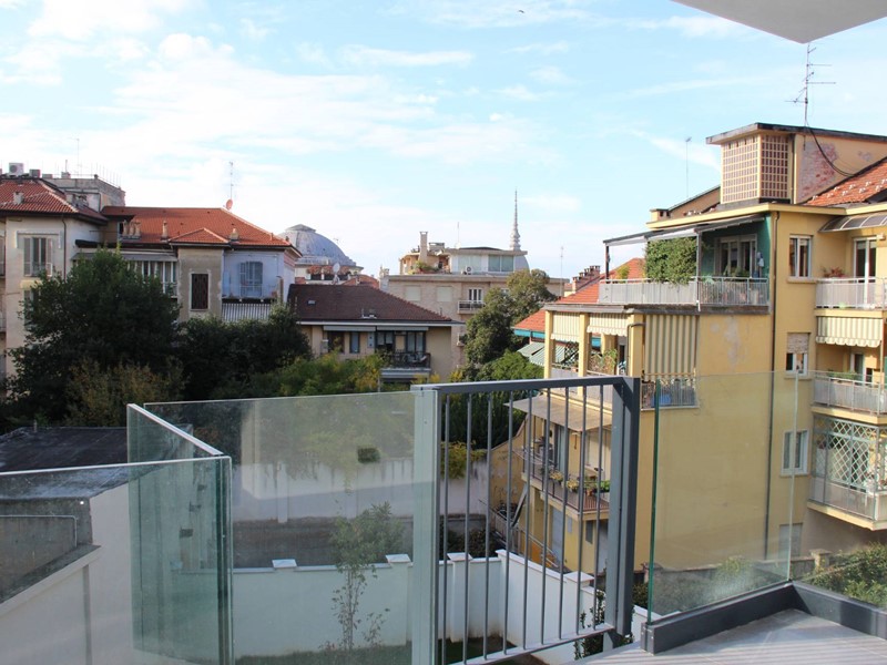 L'ingresso si apre su un luminoso salone di circa 50 mq dal quale si accede al terrazzo con una splendida vista panoramica sulla Mole Antonelliana.