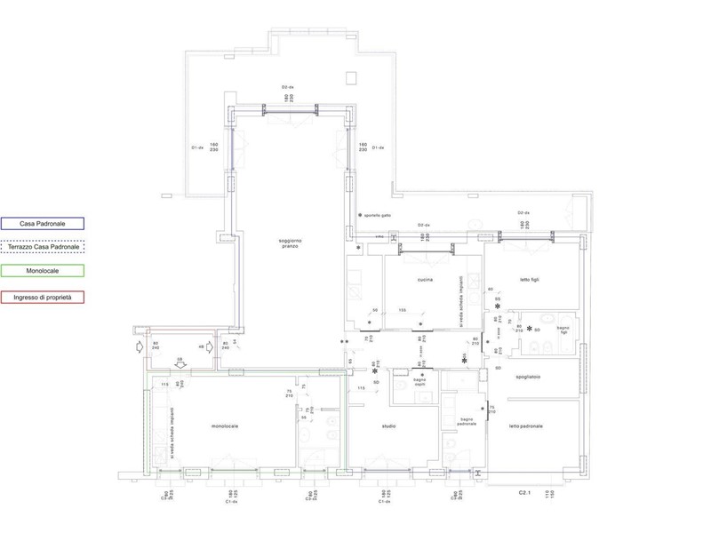 Completano la proprietà un box auto doppio, con possibilità di locazione di altro box, e due cantine.