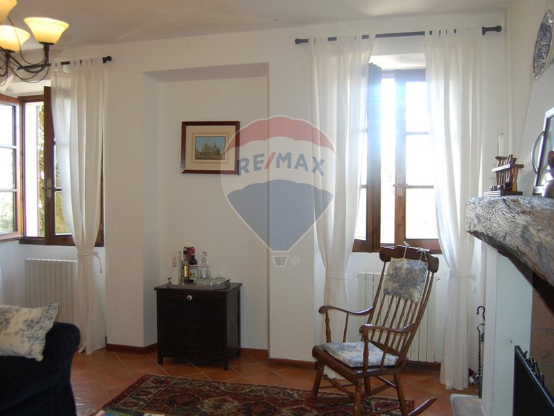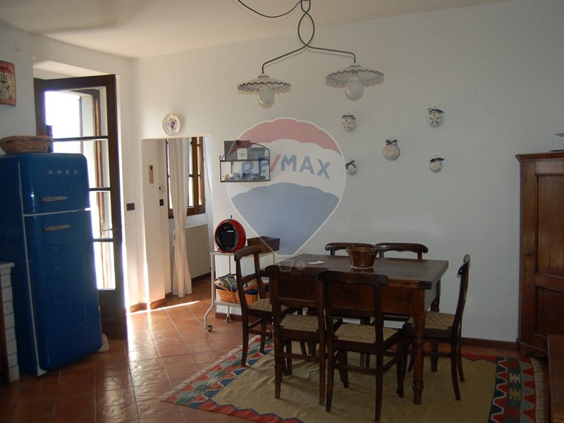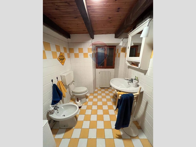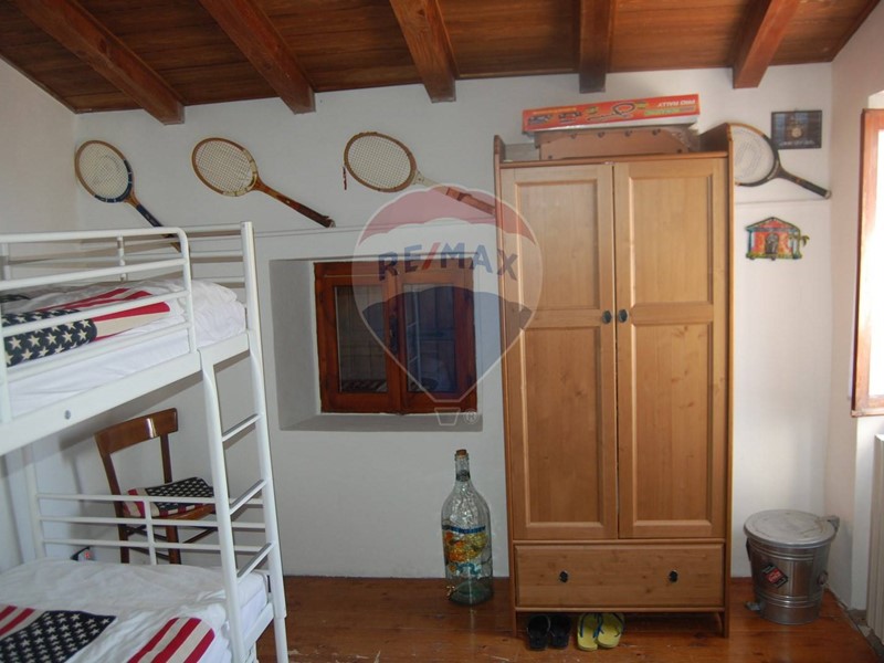 Dal secondo ingresso si accede alla cucina abitabile, sul lato sinistro soggiorno con camino. Al piano superiore due camere da letto e un bagno finestrato con doccia.