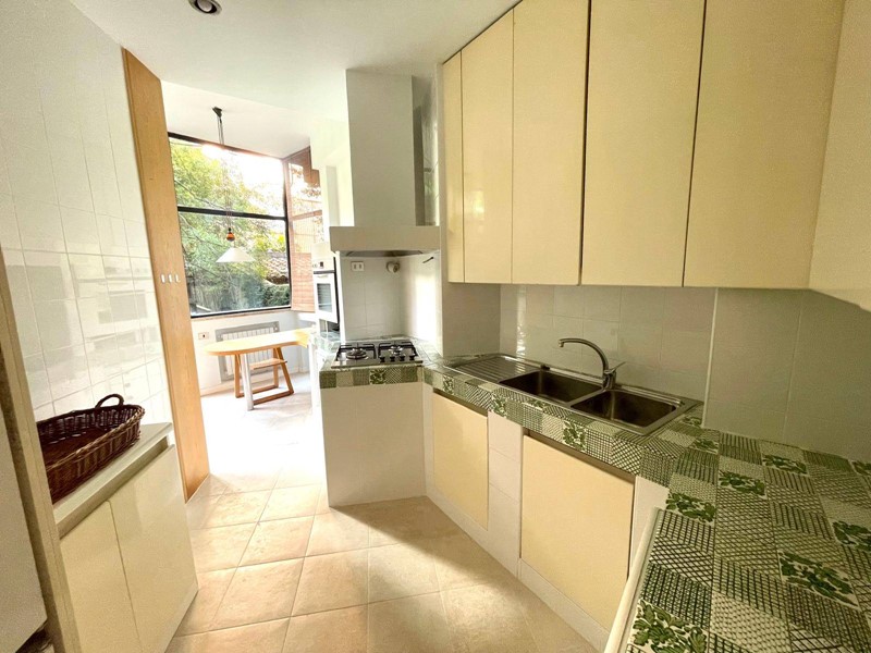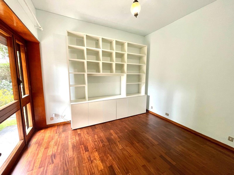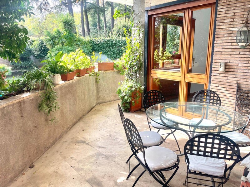 In un contesto elegante e immerso nel verde, proponiamo in locazione un raffinato appartamento di 180 mq catastali, situato in un bel complesso riservato, con piscina condominiale e giardino privato. Limmobile, ristrutturato recentemente, si compone di: ampio ingresso, salone doppio con affaccio sia sul giardino sia su una terrazza abitabile ideale per pranzi e cene allaperto e con vista sulla piscina condominiale. Lappartamento è composto da tre camere da letto, due bagni di cui uno en suite ed una piacevole cucina abitabile con ampie vetrate nel verde. Completano la proprietà un appartamento di servizio di circa 10 mq, composto da una stanza e un bagno oltre ad un box auto + un posto auto a turnazione tra i condomini. Lappartamento è luminoso, silenzioso e immerso in un ambiente esclusivo, perfetto per chi cerca comfort, privacy nel verde in una zona residenziale di pregio e ben collegata.