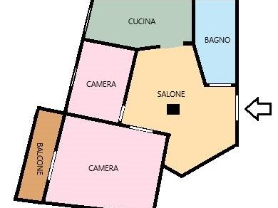 Ingresso, salone, cucina, semi abitabile, camera da letto, cameretta/stanza, bagno finestrato con doccia e balcone.