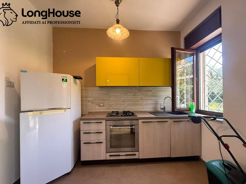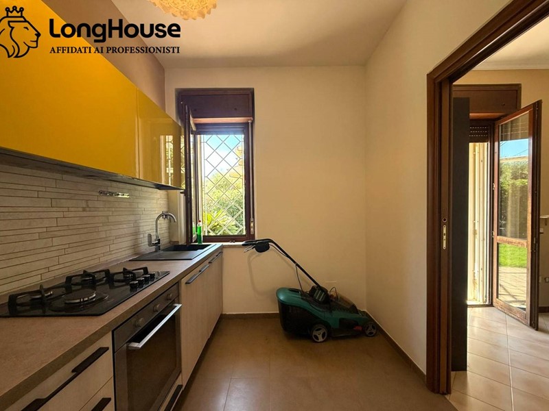 Ingresso, disimpegno, salone, cucina separata semi abitabile, camera da letto, bagno finestrato con doccia e giardino angolare.