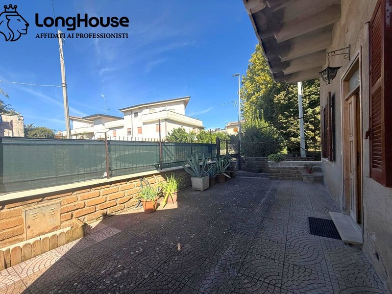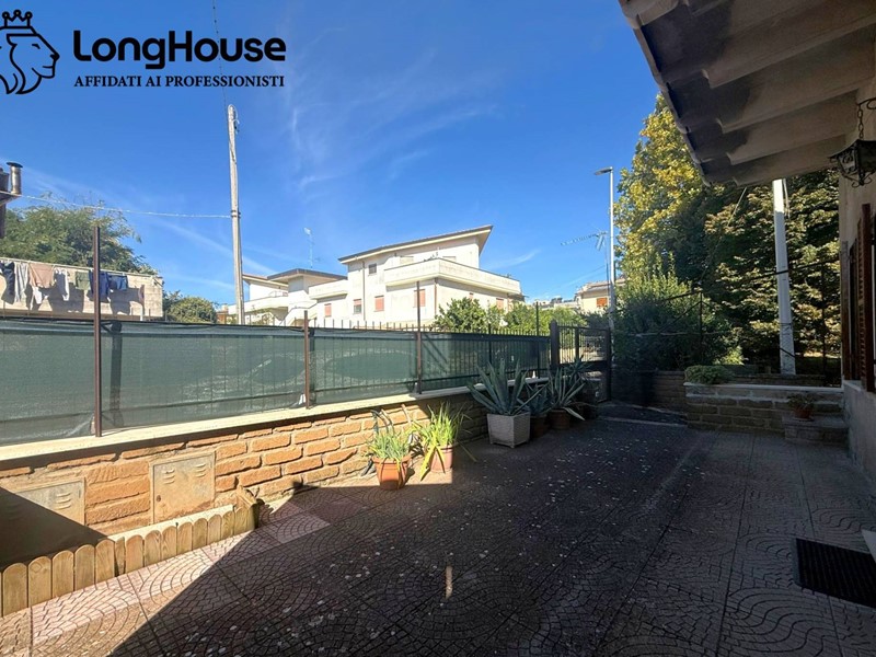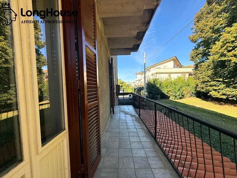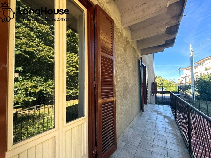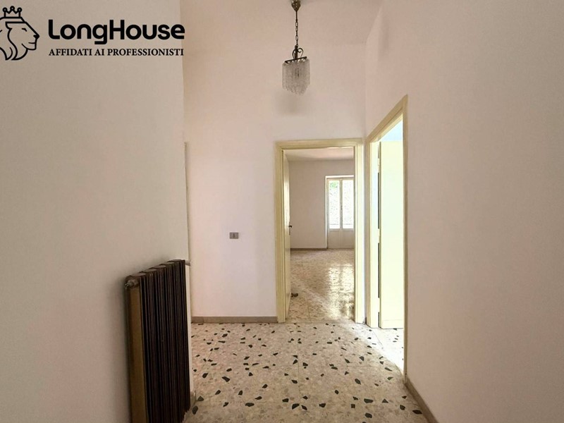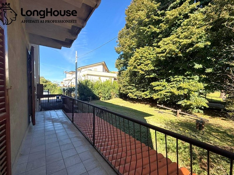 Ingresso, camera, sala da pranzo con cucinotto e bagno con vasca, disimpegno, scale, ampio salone, disimpegno con secondo ingresso, cucina separata abitabile, camera da letto, cameretta, bagno finestrato con vasca, balcone con affaccio su parco comunale e giardino mattonato.