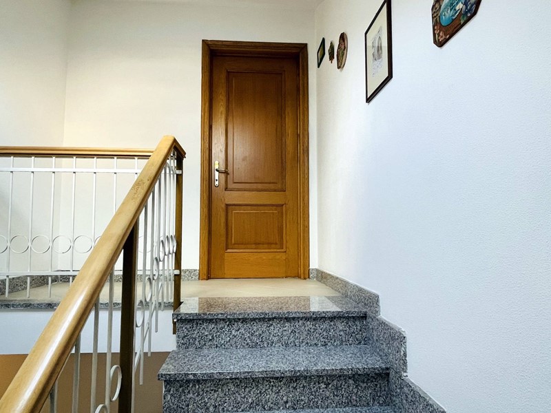 Il piano primo ospita un grande appartamento, con ambienti luminosi e ben distribuiti: ingresso, cucina abitabile con accesso alla terrazza, salone doppio con balcone, tre camere da letto (una con accesso diretto alla terrazza), due bagni e ripostiglio.