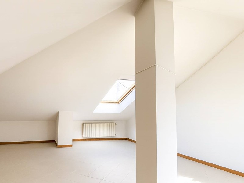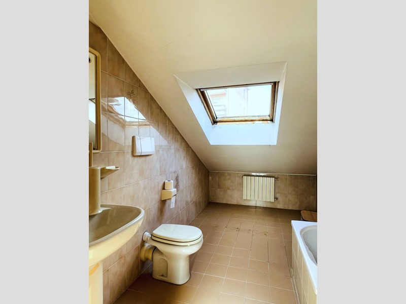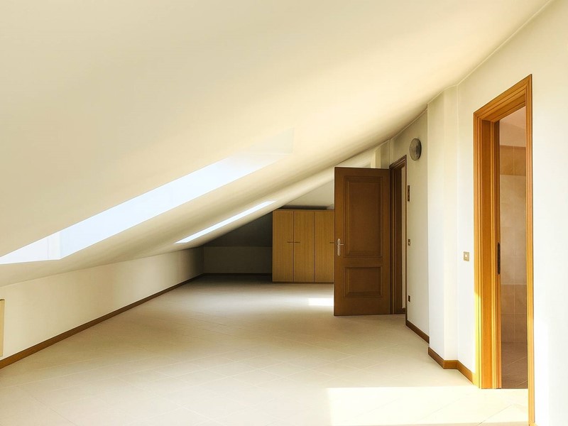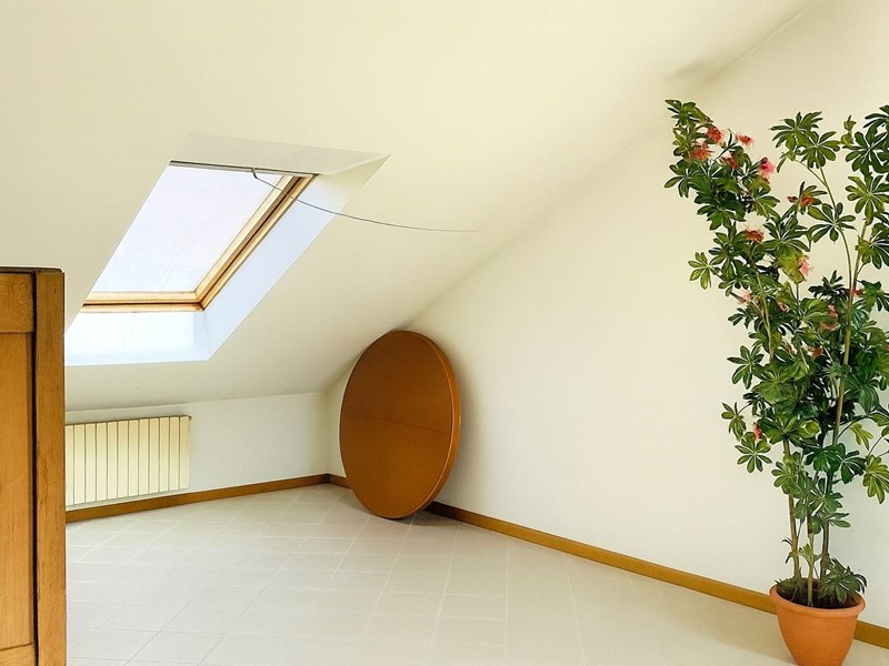 Al piano superiore, un ampio locale sottotetto con bagno offre ulteriore superficie sfruttabile per hobby, studio o zona ospiti.