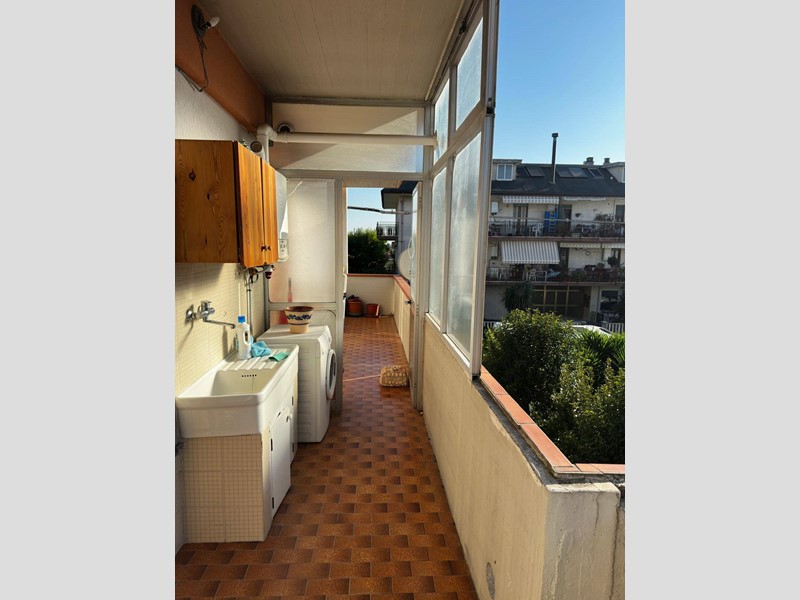 L'immobile, con esposizione Sud/Ovest è composto da soggiorno con angolo cottura, disimpegno notte, due camere da letto, bagno completamente ristrutturato con cabina doccia e balconcino. Finestre nuove in PVC con doppi vetri a taglio termico e apertura vasistas. Balcone di circa 10 mq in parte verandato. Riscaldamento autonomo con termosifoni in ghisa. A completamento dell'immobile ci sono un locale garage di circa 20 mq. e un fondaco di circa 8 mq. Classe energetica in corso.