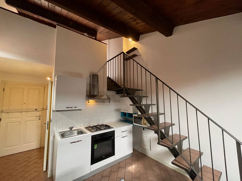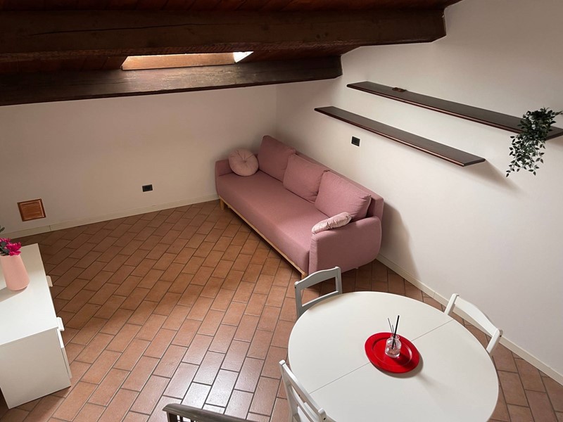 Appartamento in affitto a Ferrara, Via Ripagrande, centro storico. Libero, in piccola palazzina ristrutturata di sole sei unità, splendido bilocale al terzo ed ultimo piano composto da, ingresso, soggiorno con cucina a vista, camera da letto matrimoniale in soppalco. Bagno con doccia. Travi in legno a vista. Utenze autonome e climatizzato. Deposito cicli.